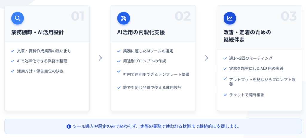 週1回MTG+AI業務棚卸し+プロンプト設計+チャットサポート